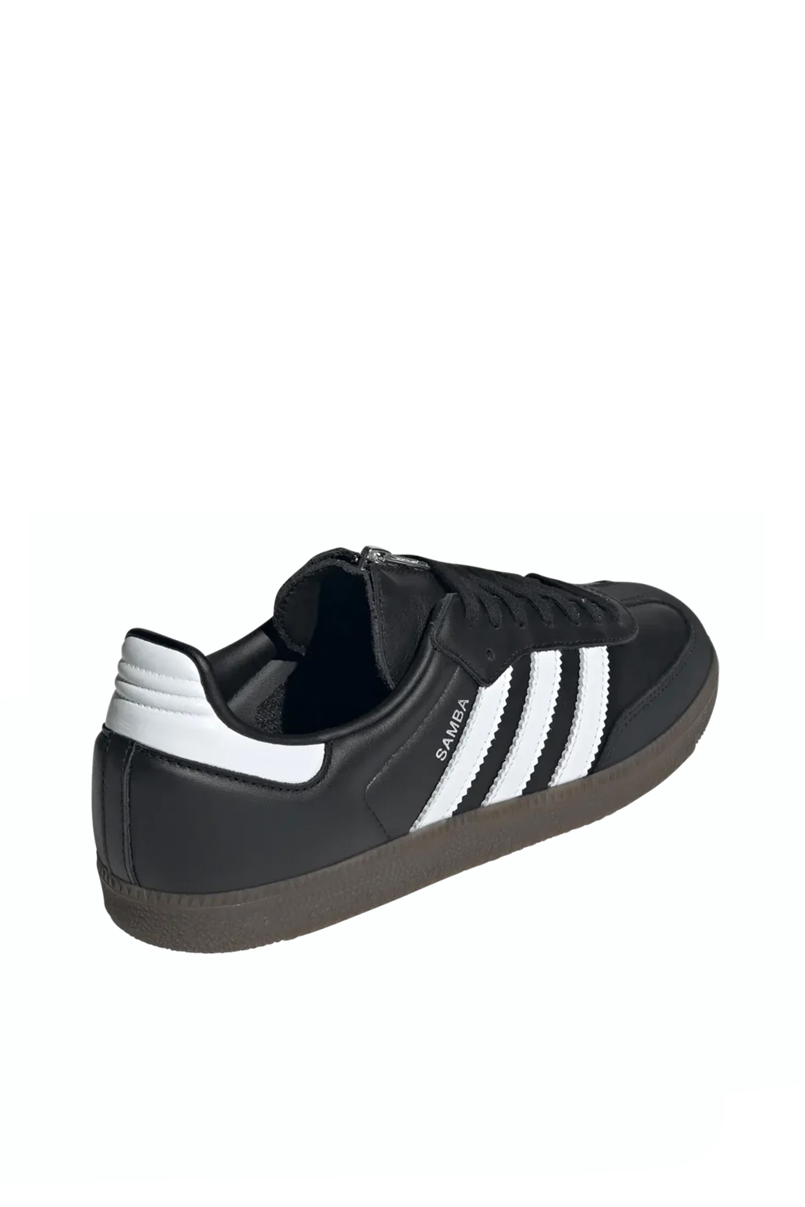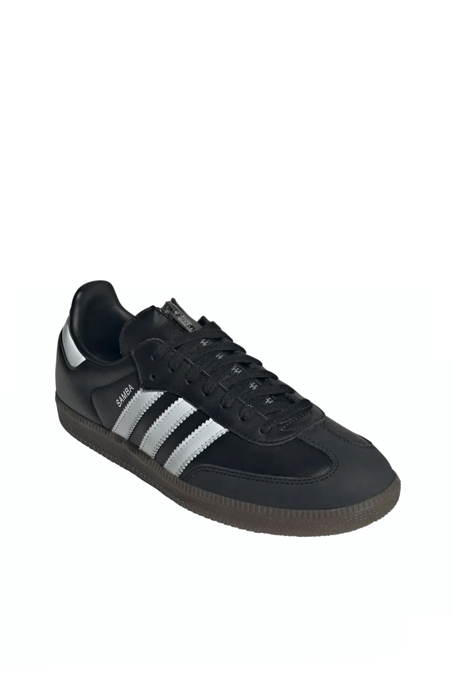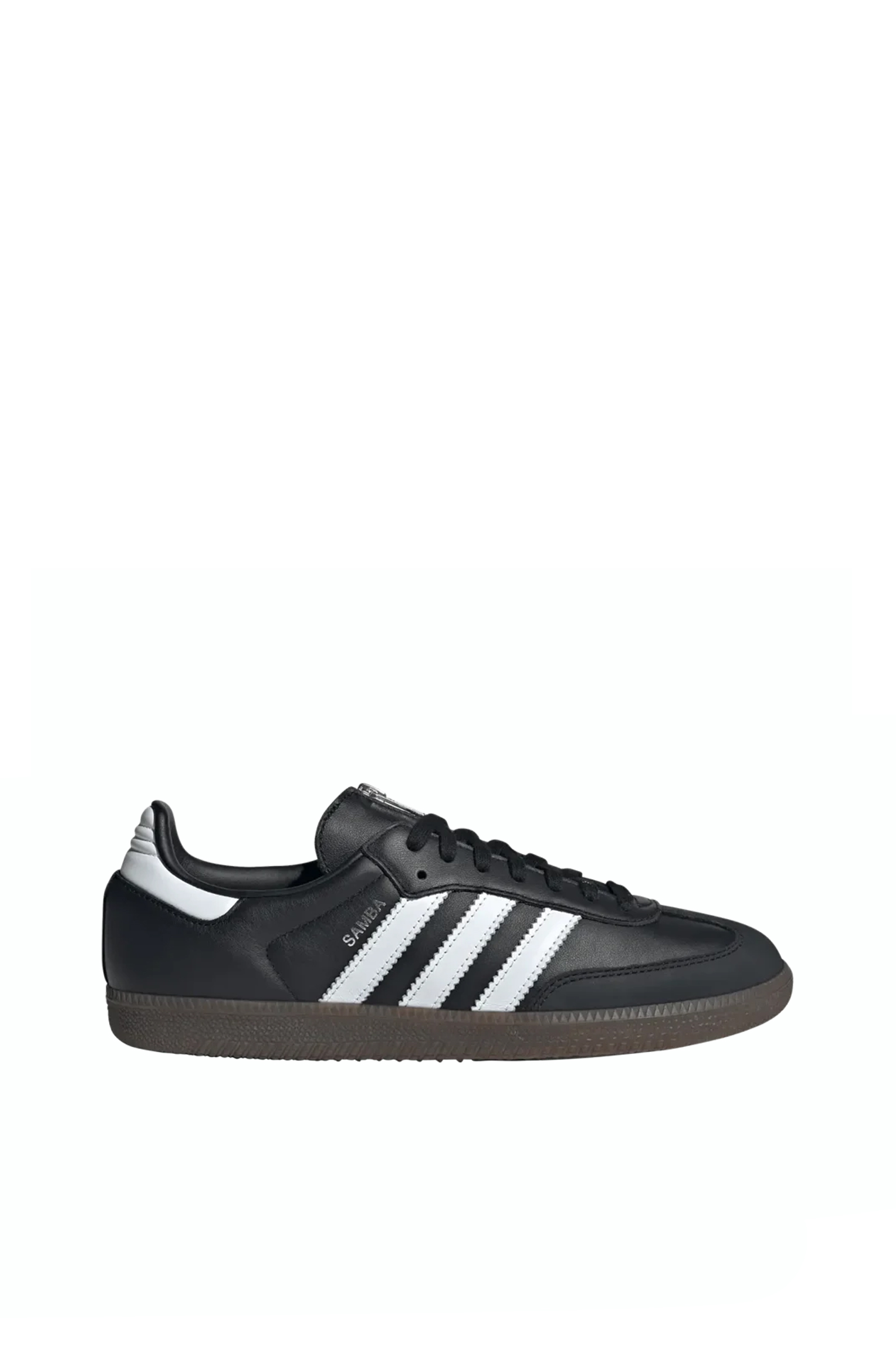 Adidas Samba OG — це легенда, яка поєднує класику та сучасний мінімалізм. Чорний шкіряний верх створює елегантний та стриманий силует, який підкреслюють контрастні білі смуги та фірмове золоте тиснення SAMBA. Акуратний носок і впізнавані лінії роблять цю модель іконою стилю вже понад півстоліття.
