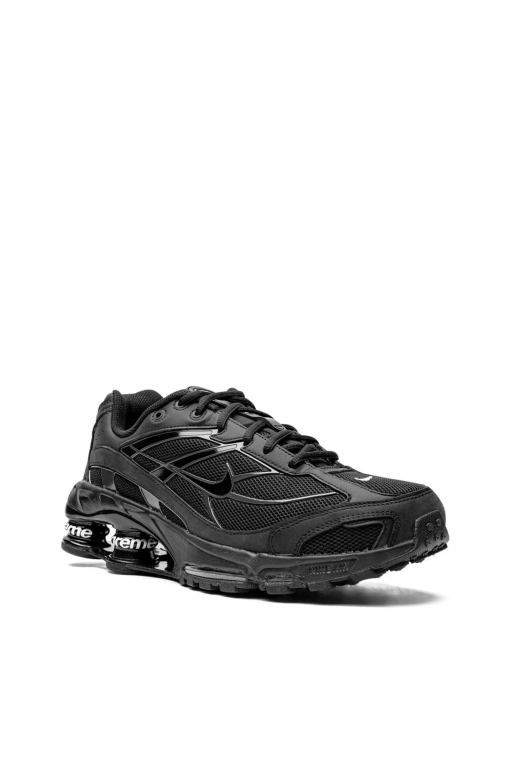 Головний акцент — система Shox із пружними амортизуючими стовпчиками, які забезпечують максимально м’який крок і миттєвий відскок. Легендарне лого Supreme на задніх модулях робить пару впізнаваною з першого погляду. Це кросівки для тих, хто любить виділятися та обирає стиль без компромісів.